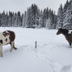 Mazlíčky je třeba hlídat, maringotka je oplocená nízkým el. ohradníkem ale je umístěna na pastvině se zvířaty.